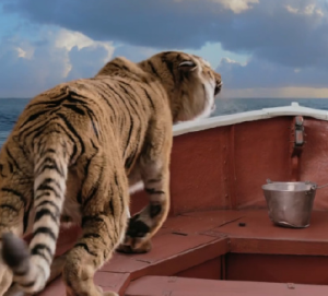 理查德·帕克从不是简单的“动物伙伴”,这个与历史上海难食人事件受害者同名的猛虎,实则是派内心“本我”的化身。漂流初期,派试图驯服猛虎的挣扎,正是人类文明与生存本能的博弈;当他学会与猛虎共存,定期投放食物、划定安全区域,本质上是与自己的野性达成和解。最动人的一幕莫过于漂流终点,老虎跃向丛林时没有回头,派痛哭流涕的瞬间,道尽了文明对野性的依赖与告别——正是这份“恐惧的陪伴”,让他在孤独深海中保持着清醒的求生意识。