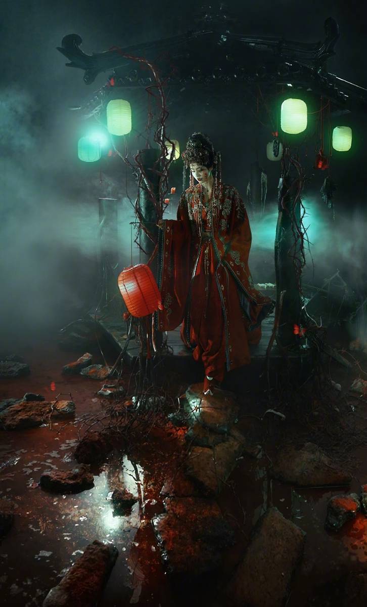这组造型对中式恐怖美学的运用,堪称教科书级别。不同于西方恐怖美学的血腥暴力,中式恐怖的精髓在于“心理暗示”,通过熟悉的传统元素营造违和感,引发观者对未知的恐惧。白鹿的鬼新娘造型,正是沿用了这一逻辑——嫁衣、蜡烛、红痣都是国人熟知的元素,分别对应婚姻、光明、美感,而造型通过弱化嫁衣的喜庆感、强化蜡烛的昏暗感、扭曲红痣的装饰感,让熟悉的元素产生陌生化的违和感,这种“于熟悉中见诡异”的表达,比直白的惊悚更具冲击力,也更贴合中式恐怖的内核。